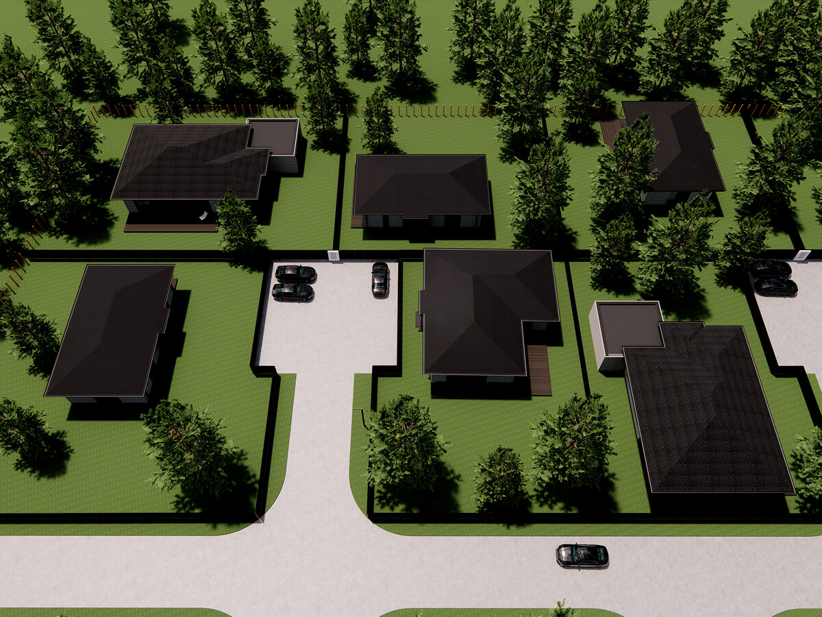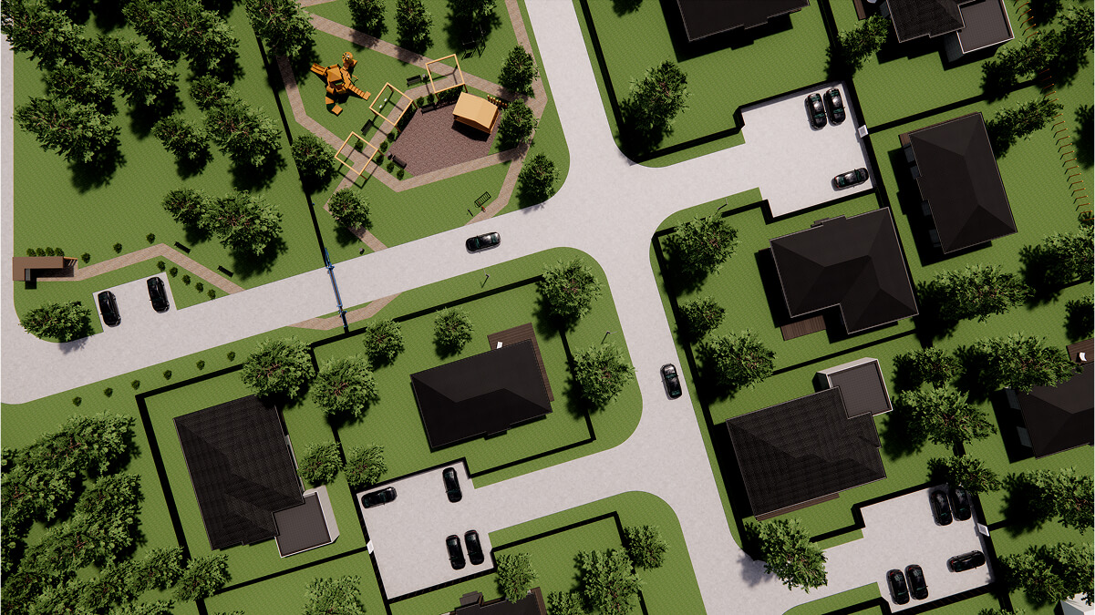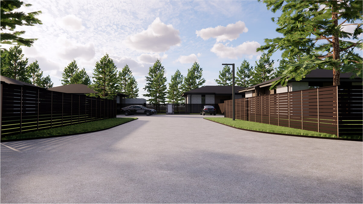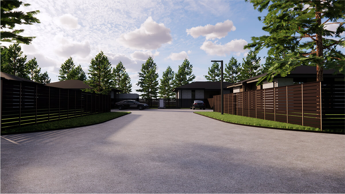 Через поселок проходит асфальтированная центральная улица, с ответвлением на кулуарные улицы. Это создает дополнительный комфорт, снижая скорость движения по поселку и наличие парковочных мест для всех участков.
